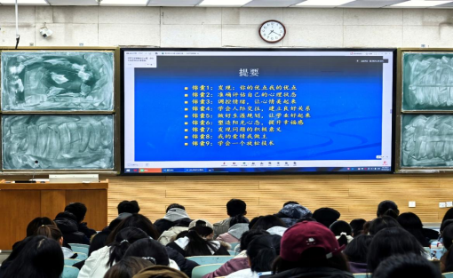 赵富才教授以“锦囊”为载体,系统地提供了从自我认知到情绪管理、从人际交往到生涯规划的全方位指导,通过引导同学们提升心理素质、优化人际关系、明确发展方向,同时掌握切实可用的放松与调节技能,最终助力大家实现个人成长与幸福感的双重提升。