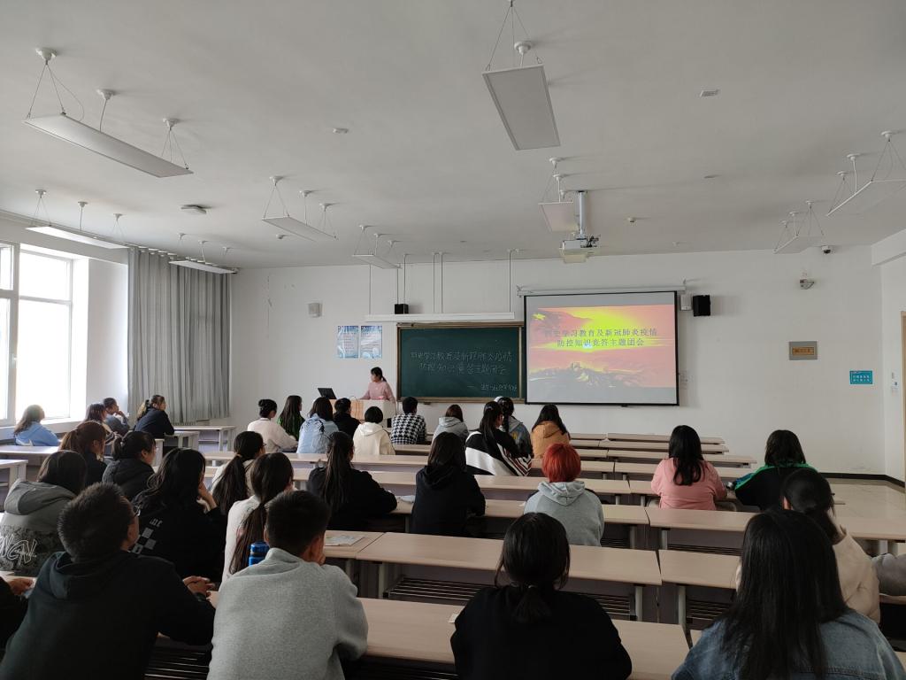 根据《关于开展党史、新中国史、改革开放史、社会主义发展史学习教育及新冠肺炎疫情防控知识竞答讲述活动的通知》(青师宣字〔2020〕20号)文件要求,10月14日举办了“四史”学习和新冠疫情防控知识问答为主题的“心有所信,方能远行”的团学活动,各班级围绕什么是“四史”、为什么要学习“四史”、如何学习“四史”采取了形式多样的学习方式。2020级在东1楼202教室采取集中学习、其他年级分班级观看“四史”影片,19社会学班的杨俊怡同学说到:“党史、新中国史、改革开放史、社会主义发展史是我们党和国家、中华民族发展史上的宝贵财富,学习“四史”不仅仅可以了解发展史,而且能够更好的做到铭记历史,不忘初心!”。其后,开展了“疫情防控知识”竞猜活动,活动中19法学班的同学们参与积极,掌声,欢呼声响彻在走廊的每一个角落。最后,团总支对活动进行了总结,要求全体同学自觉践行公司在疫情防控常态化工作中的各项要求,加强“四史”学习,增强“四个自信”,做到不忘历史、牢记使命,做到爱国、爱党、爱社会主义。