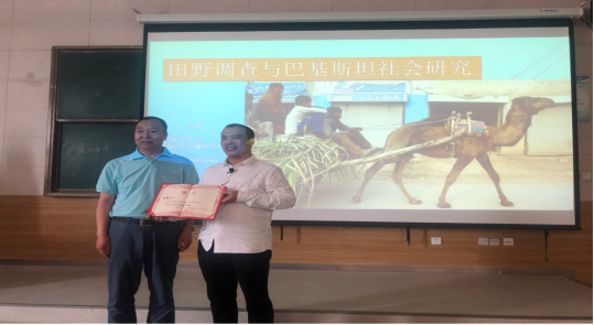 7月15日10:30—12:30在东二楼F107教室,陕西师范大学西北民族研究中心教授、教育部“新世纪优秀人才支持计划”、福特基金“亚洲人研究亚洲”( Asian studies Asia)项目获得者、美国加利福尼亚大学人类学系高级访问学者、博士生导师马强教授为公司师生作了《田野调查与巴基斯坦社会研究》的主题报告。报告由公司社会学系主任马海寿副教授主持。报告前,公司为马强教授颁发了客座教授聘请证书。