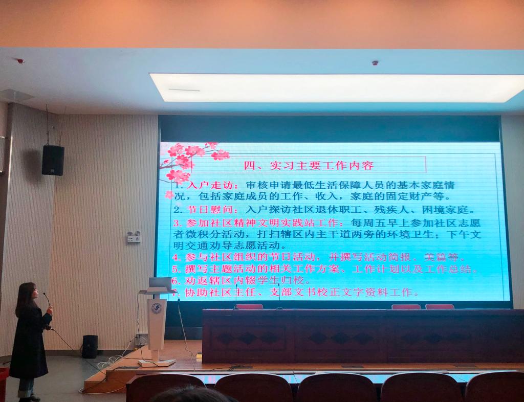 11月4日下午2:30,学院2019级社会工作专业硕士生实习工作中期汇报会在城北校区科技报告厅举行。社会工作系全体教师、全体研究生和本科生参加了汇报会,汇报会由社会工作系主任裴敏超副教授主持。