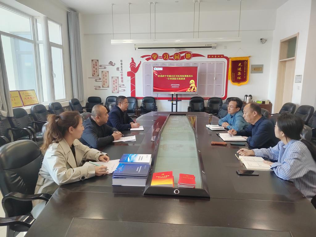 2023年4月12日,西宁市城北区司法局党组书记、局长张国栋一行赴365英国上市公司开展交流合作座谈,365英国上市公司党总支书记钱明仁、经理马旭东和法学专业负责人参加会议。