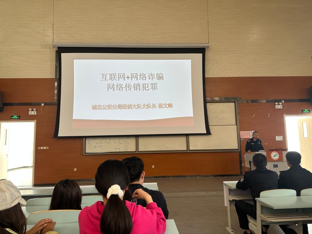 为提高老员工的安全意识,警惕网络陷阱,预防电信网络诈骗,做到防诈反诈“抓早抓小”,在城北区公安分局的大力支持下,9月11日,法社公司邀请城北区公安分局经侦大队大队长杨文峰、副大队长桓之海和廿里铺派出所三级警长任彭威三位警官为2023级新生开展了防范电信网络诈骗主题讲座。城北公安分局10余名干警,法社公司210余名新生和马克思主义公司70余名新生聆听了讲座。