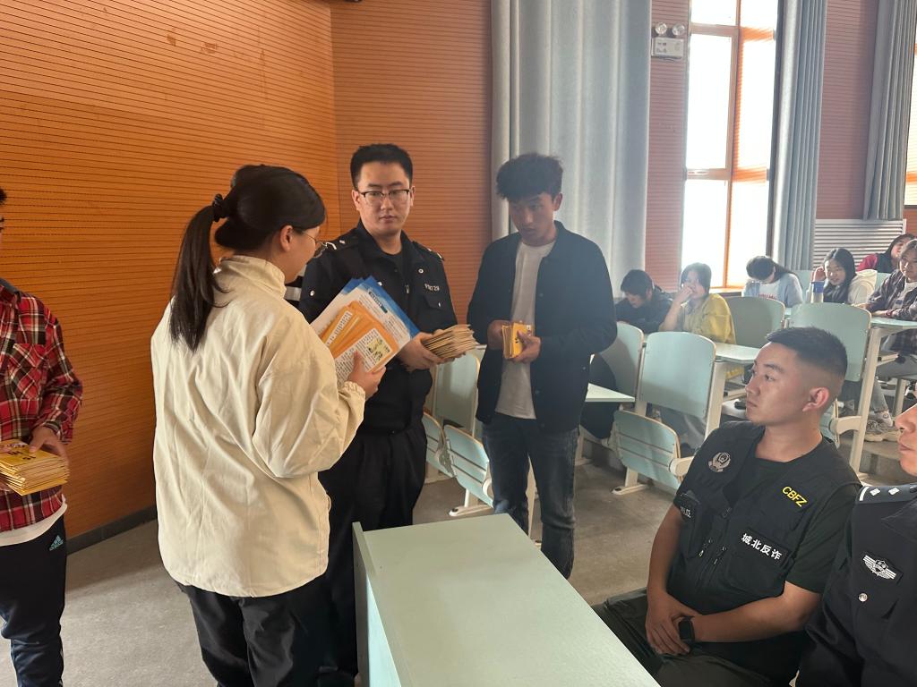 杨文峰大队长从防范传销、非法集资和合同诈骗三个方面,向同学们介绍了新的电诈手段,通过真实案件和涉及员工骗术类型的讲解给大家给予了深刻的警醒和启示,引导教育同学们从案件中汲取教训,增强防范意识,保护自身安全。桓之海副大队长从什么是电信网络诈骗、电信网络诈骗的常见类型、买卖个人电话卡和银行账户的危害,如何才能防止被骗等多个视角出发,以大量真实鲜活的案例警示同学们对各类信息“擦亮眼”,警惕手机短信和不明链接的诈骗,要从正规渠道开展兼职、购物和相关社会活动,避免不必要的经济损失。任彭威警长为大家讲解了防盗、禁毒等方面的知识,呼吁同学们增强社会责任感,提高禁毒意识和防毒拒毒能力,做一名自觉遵纪守法、勤奋学习的新时代老员工。与会干警们还为同学们分发了防范电诈、防盗禁毒的宣传品。