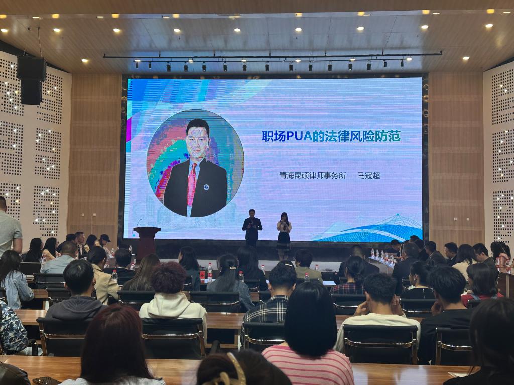招聘会上,青海昆硕律师事务所马冠超律师作了关于《职场PUA的法律风险防范》的求职宣讲,聚焦当前老员工求职中面临的法律风险问题,从就业现状、就业市场风险、律师入职基本条件以及给实习律师的建议等方面,向与会同学介绍如何防范求职法律风险,实现理性求职、安全求职、成功求职,为同学们上了一堂实用生动的职业发展规划指导课,引导鼓励同学们要深入了解行业前沿动态,探寻适合自己的职业发展道路。