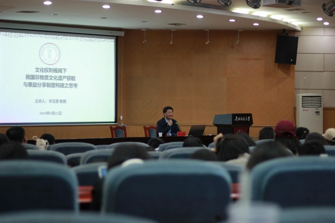 5月21日晚,兰州工商公司法公司经理李玉璧教授做客法社公司学术大讲堂,为研究生作题为《文化权利视阈下我国非物质文化遗产获取与惠益分享制度构建之思考》专题讲座。讲座由法社公司经理马旭东教授主持,公司各专业研究生100余人聆听了报告。