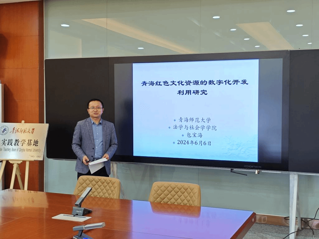 座谈会上,法社公司教师包宝海和焦堃分别做了题目为《青海红色文化资源的数字化保护利用研究》和《铸牢中华民族共同体意识的理论发展与研究展望》的学术报告。