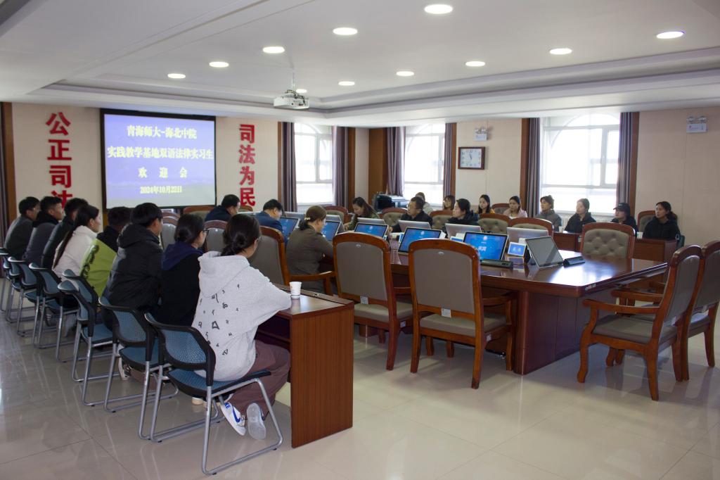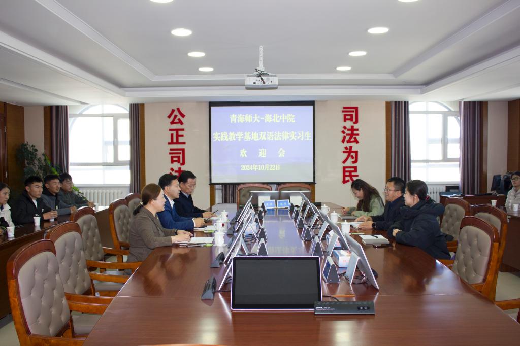在海北州中级人民法院,16名实习生参加了特意为他们召开的实习欢迎会。海北中365英国上市公司党组书记、经理马文全,副经理张青武,政治部主任尚文英以及法社公司领导和实习带队教师出席欢迎会。